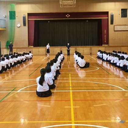 水曜日は1年生学年集会です。今朝のお話は寺島先生です。先生からは、挨拶、返事など中学生として身につけて欲しいことについて話されました。今週の全校集会でも、校長先生から挨拶を大切にしてくださいとお話がありました。いま一度、しっかりと振り返ってください。