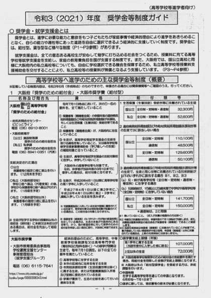 本日、「令和3(2021)年度 奨学金制度ガイド」を生徒を通じて配付いたしました。ご確認ください。
