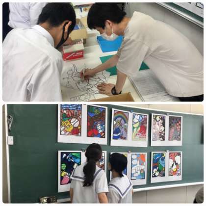 美術室では、ステンシルの作成に取り組んでいました。