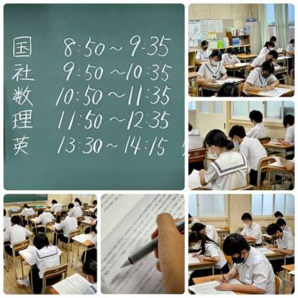 3年生の「令和3年度中学校チャレンジテスト」を受けています。どの生徒も集中して取り組んでいます。