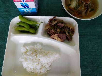 9月13日(月)の給食は、プルコギ・トック・えだまめ・ご飯・牛乳です。