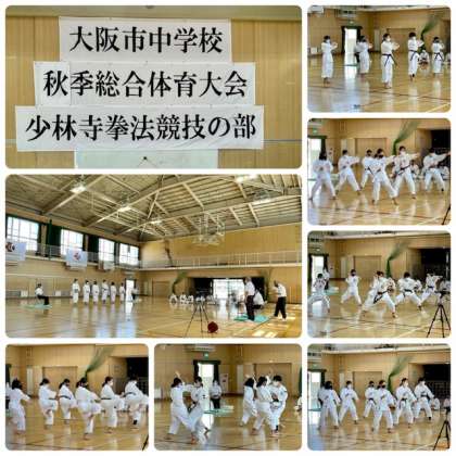 10月3日(日)少林寺拳法部は、秋空の下、中野中学校体育館で行われた大阪市中学校秋季総合体育大会に出場しました。熱のこもった演武に、場内の人々を感動させました。