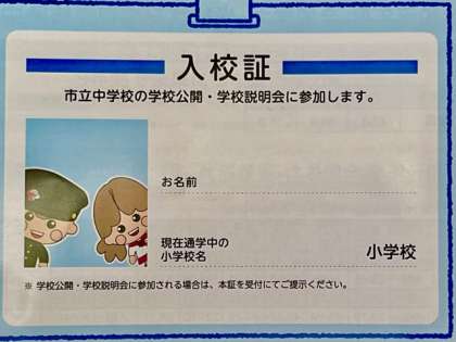 本日は土曜授業です。学校選択制に関わり、学校見学会並びに学校説明会を開催いたします。申し込みされた方は、玄関でインターフォンを押してください。
