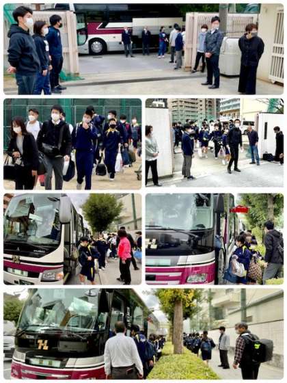 修学旅行 学校を出発しました。