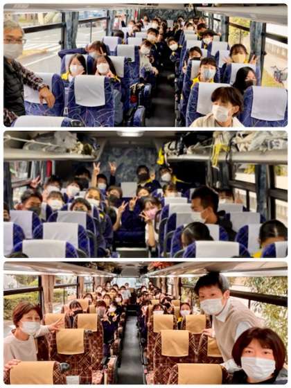 予定より少し遅れて8時4分バスは大淀中学校から出発しました。