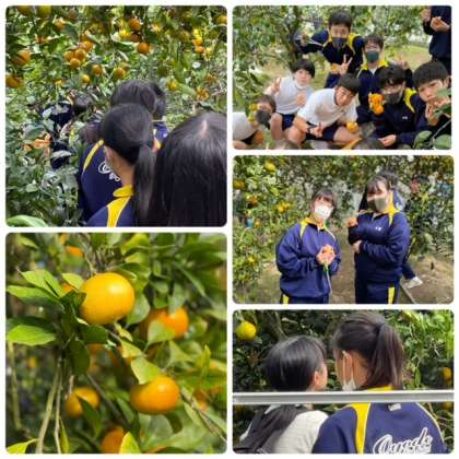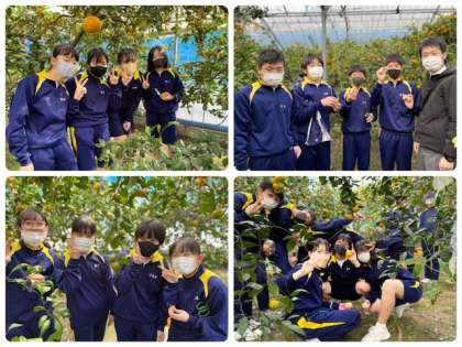 淡路島フルーツ農園に到着しました。みかん狩りを楽しんでいます。とても美味しいみかんです。