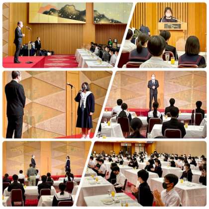ホテルオークラ神戸平安の間で入館式です。司会や生徒代表の挨拶はとても立派でした。ホテルの方からは、ようこそ神戸へ、ゆっくり過ごして思い出深い修学旅行にしてくださいとご挨拶いただきました。