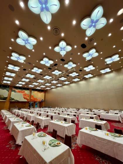 生徒は起床後検温をしています。朝食の準備は整いました。7時30分からは朝食です。
