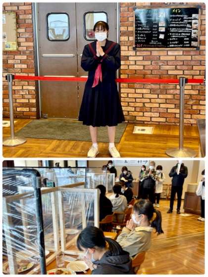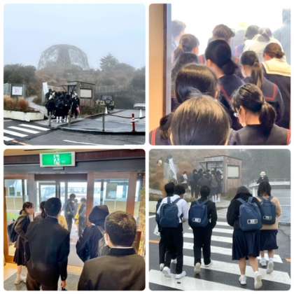 昼食が終わりました。霧の中ですが、クラス、班ごとに、六甲ミーツアート散策に出発しました。