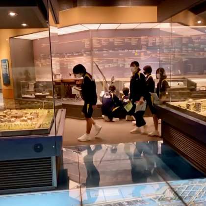 大阪くらしの今昔館でのフィールドワークの様子です。この施設は、コロナ禍以前は、大阪にやって来られた外国の方々の人気スポットで、常に超満員でした。幸い混雑を避けることができて良かったです。