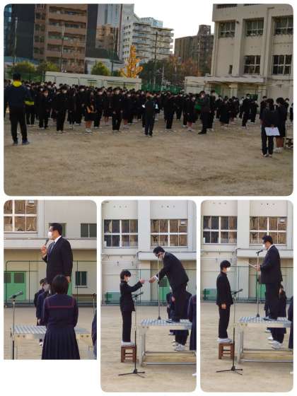朝の挨拶の後、まずは表彰の伝達がありました。