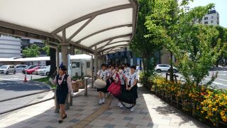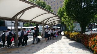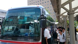 鹿児島中央駅に到着し、クラス毎にバスに乗りました。