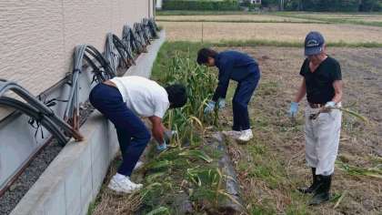 民泊2日目。朝から田んぼでニンニクの収穫体験。