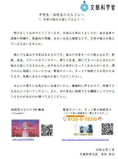 文科相メッセージ〜不安や悩みを話してみよう〜(生徒向け)