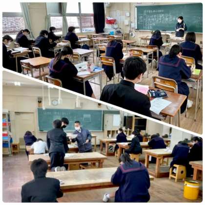 1年生の授業の様子です。1組は英語の学習、2組は技術・家庭の学習(少人数授業)、3組は理科の学習です。