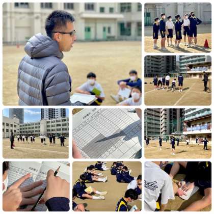 陸上競技(持久走)の学習です。目標設定と正しい走り方を実践することで、苦手意識のある生徒も、喜びや達成感を味わう授業です。