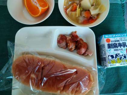 3月3日(木)の給食は、鶏肉のみそバターソース・洋風煮・デコポン・おさつパン・牛乳です。