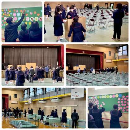 本日放課後、2年生の皆さんが卒業式式場の仮設営をしてくれました。明日からは卒業式の練習が本格的になります。