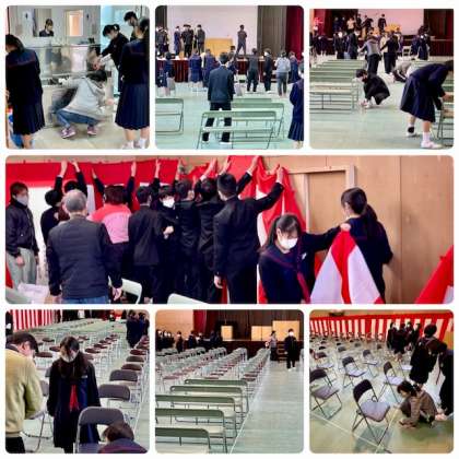 明日、第75回卒業式が挙行されます。本日午後は卒業式の準備を行いました。校舎内を在校生が心を込めて清掃し、卒業式会場の設営を行いました。気温もぐんぐん上がり春の陽気です。明日は穏やかで素晴らしい卒業式になること間違いなしですね。準備してくれた在校生の皆さんありがとうございました。