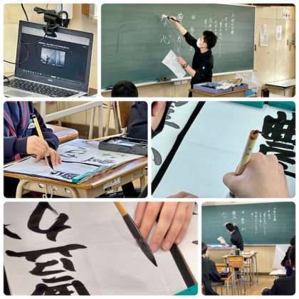 長野先生のご指導のもと行書で書くことを学びました。伸び伸びとした生徒の筆遣いがとても良かったです。