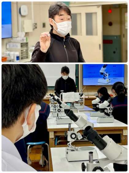 生徒に話を聞くと、本物の観察は教科書と違って興味が高まりますと話してくれました。生徒にとってとても貴重な時間でした。