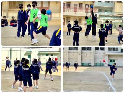 6時間目、春の日差しの中で1年生がドッジボール大会を行いました。