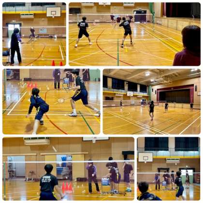 バドミントン部が体育館で活動していました。男子部員は吉田先生の高速ノックで汗を流していました。女子部員は、松瀬先生の見守りの中、ゲーム形式で練習していました。