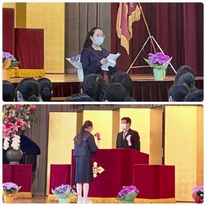 下の写真は、在校生代表歓迎の言葉、新入生誓いの言葉です。