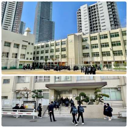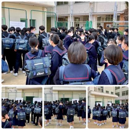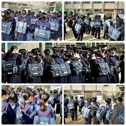 生徒の皆さんが登校しました。クラス発表を確認し教室に入りました。1年生少し緊張している様子です。