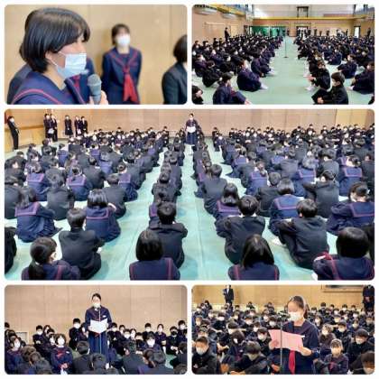始業式に続いて、生徒会主催の対面式が行われました。新入生と在校生が