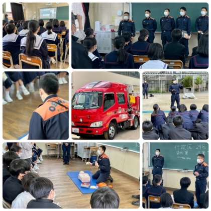 2年生は、救急救命を中心に学習しました。新型コロナウイルス感染防止対策で、講習はオンライン配信を活用しました。実際にダミー人形を使っての、AEDを使って心肺蘇生は難しかったです。しかし、体験することで、緊急事の心の準備もできました。