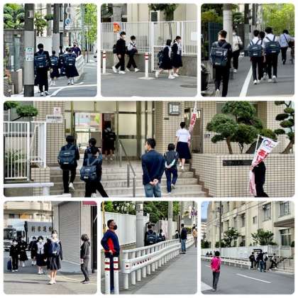 おはようございます。今朝も晴空が広がっています。毎朝、教職員が分担して生徒の登校を見守っています。今日も一日頑張りましょう!