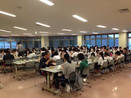 入浴後、夕食を食べています。