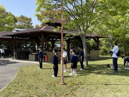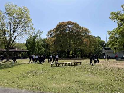 生徒たちは、自然の中で走り回っています。