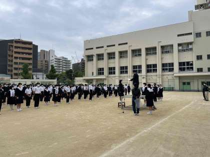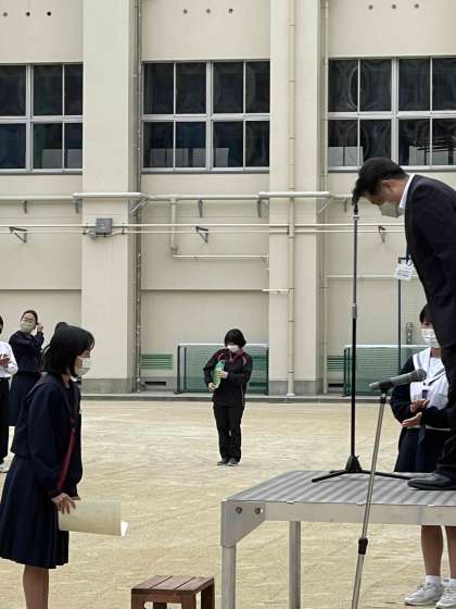 おはようございます。月曜日の朝は、全校集会です。