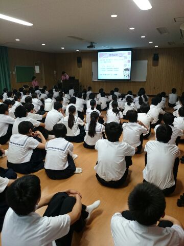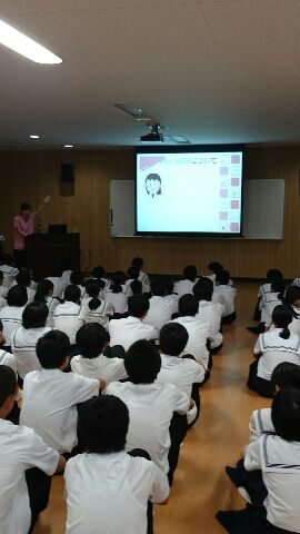 5.6時間目に3年生は、性教育を多目的室で、大阪府済生会中津病院の助産師さんを招いて、「性感染症について」の授業を行いました。
