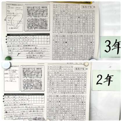 大淀中学校では、文章を書く力や考えをまとめて自分の考えを表す力を伸長するために、自宅での自習学習として「新聞コラムの書き写し」を行っています。現在は2年生と3年生が取り組んでいます。
