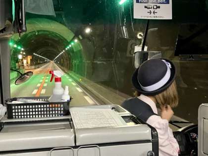 修学旅行のバスは恵那山トンネル8,649mを越えて長野県飯田市に入りました。日本で6番目に長いトンネルとガイドさんにお話を聞きました。