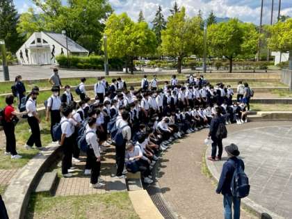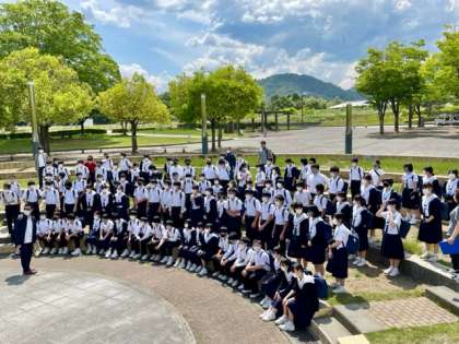 お弁当をいただいて、学年写真を撮影しました。日差しが強く大阪と同じくらい暑いです。