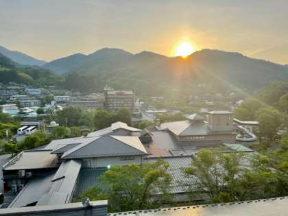 おはようございます。朝日が登ってきました。修学旅行は2日目を迎えました。今日の天気は、晴れのち曇りだそうです。