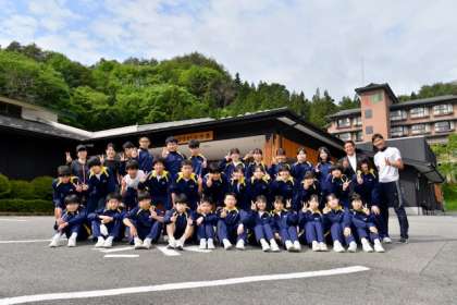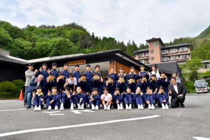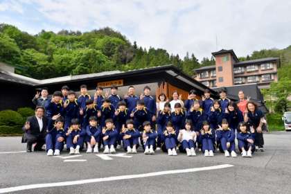 宿舎のひるがみの森を出発する際にクラス写真を撮影しました。