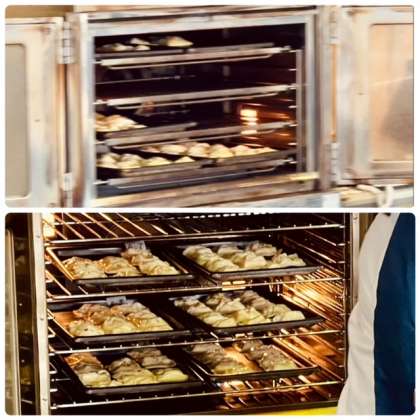 アップルパイを作っています。個性溢れるアップルパイです。工房の方にオーブンで焼いていただきます。
