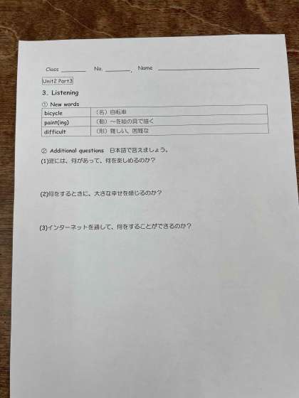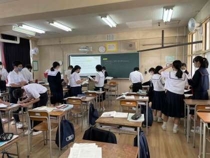 生徒たちはペア学習をおこなっています。また、他の教育実習生も参観しています。