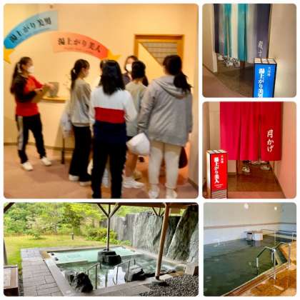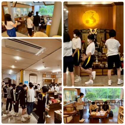 宿舎 月下美人に到着しました。避難経路の確認をした後、館内着に着替えて、お土産購入やお風呂をいただいています。