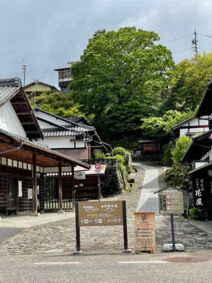 予定より約30分早く、中山道 馬籠宿に到着しました。朝までの雨がまるで嘘のようにはれてきました。