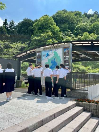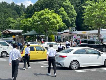 修学旅行バスは順調に走行して、伊吹パーキングエリアに到着しました。