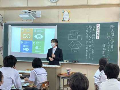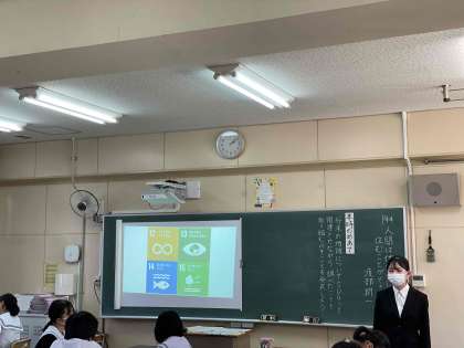 5限、2年1組にて、国語の授業です。こちらも、教育実習生が研究授業をおこなっています。