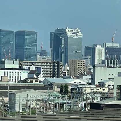 車窓から、スカイビルが見えてきました。もうすぐ学校に到着します。ガイドさんから話を聞きながら、少し寂しく思う声が聞こえてきます。