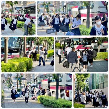 午後4時5分 修学旅行バスは大淀中学校東門に到着しました。