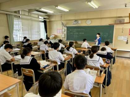 3年1組の家庭科の授業の様子です。今日は「幼稚園と保育園の違い」について学習していました。身近な話題に生徒の興味関心は高まります。